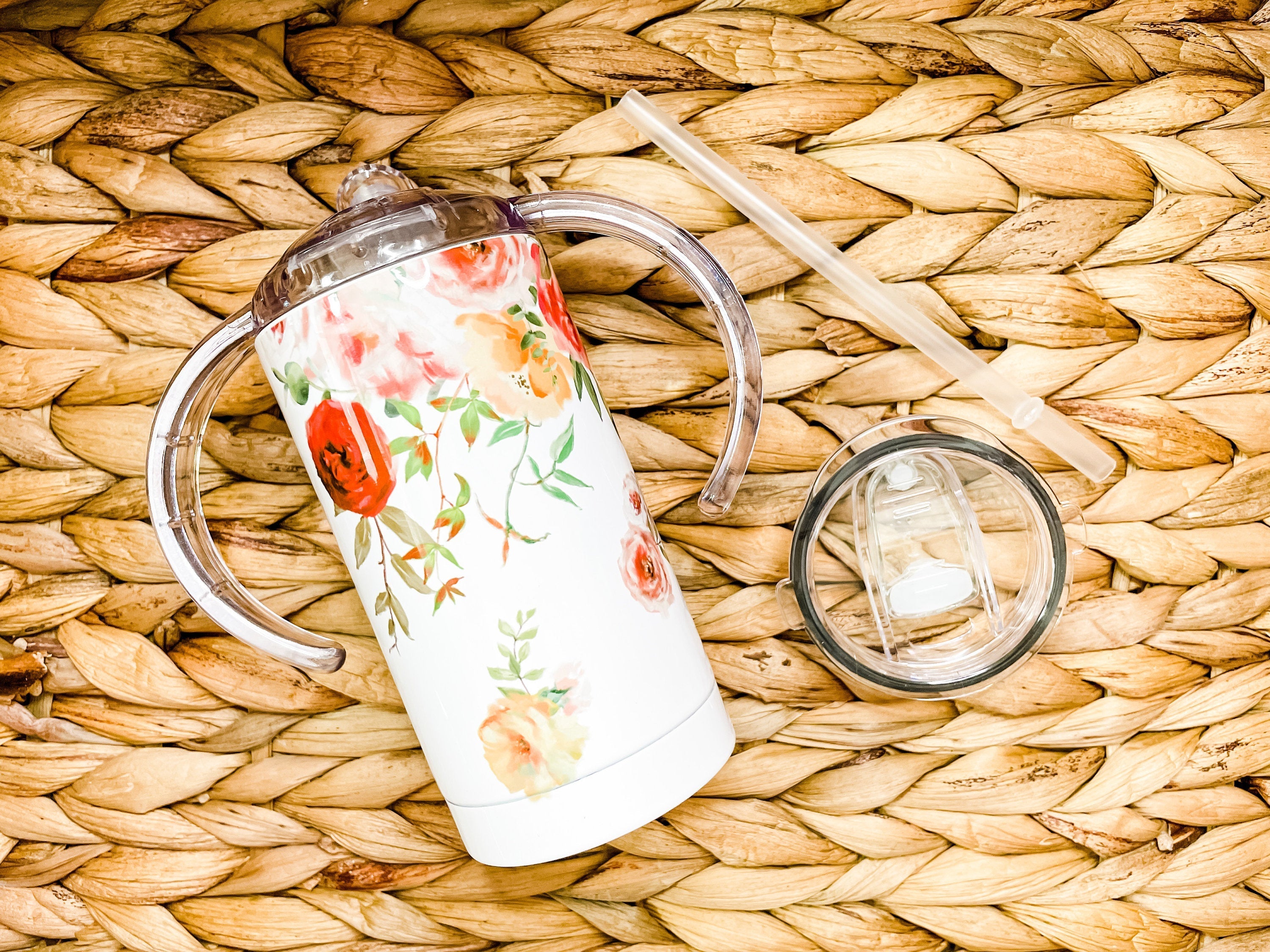 DETAILS: - The large tumbler is 20 oz, double insulated with a plastic slide top lid and comes with your choice of a silver metal straw or hard plastic straw with stopper end (to keep the straw from coming out of the slider top). - The large tumbler comes with a rubber bottom. - The small tumbler is 12 oz, double insulated and comes with both a slow-flow sippy cup lid and a slide top lid with a plastic straw with stopper end (to stop the straw from being pulled out from the top). This grows with the child and allows for use for many years! - The child's tumber lids are both screw-on. The adult tumbler lid is press-on. - Printed with sublimation printing for a long-lasting professional finish. - No epoxy used on these designs